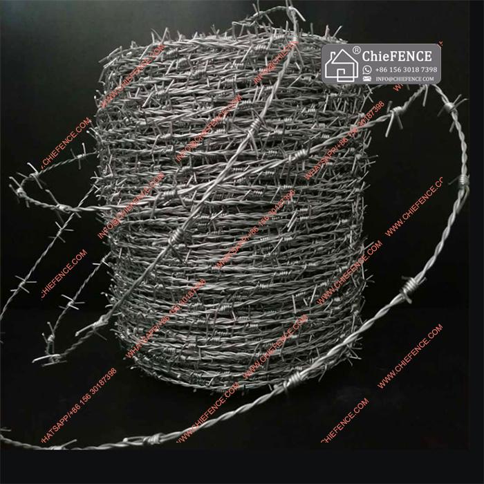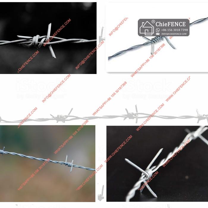 The prickly type iron wire is made of Q195 steel material, 2 strands, 4 points. Barb distance 3-6 inches (+-1/2" tolerance).